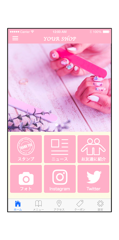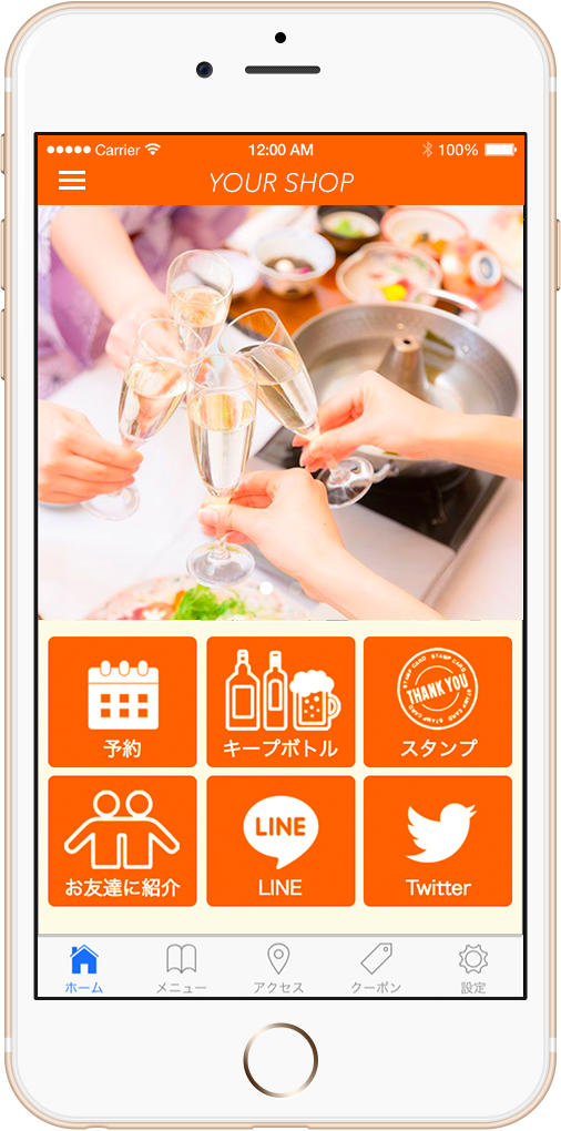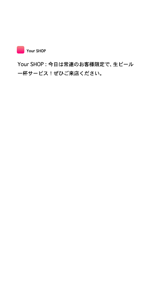 プッシュ通知でお客様に直接告知ができます。スタンプカード機能やクーポンで、積極的にリピーターにアプローチできます。