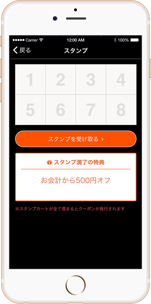 店舗ごとに自由に決めてご利用頂くことができます。例えば、お会計500円ごとに1スタンプや、来店ごとに1スタンプという形で運用いただいています。